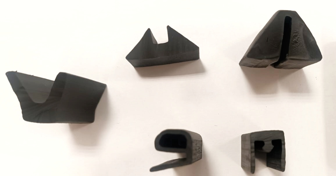 Профили резиновые производим из МБС 60112 средней твердости 65ШорА, черного и белого цвета. ТЭП заменитель силикона MASFLEX 35109NAT, 35ШорА, прозрачная, а также из силикона и полиуретана.